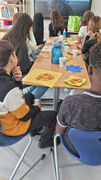 La classe de français 9 💖 est au complet, la révision des thèmes de la 8ᵉ année est réussie 🎉 – et pour commencer avec À toi 2, nous avons préparé et dégusté des gaufres ensemble 😋.