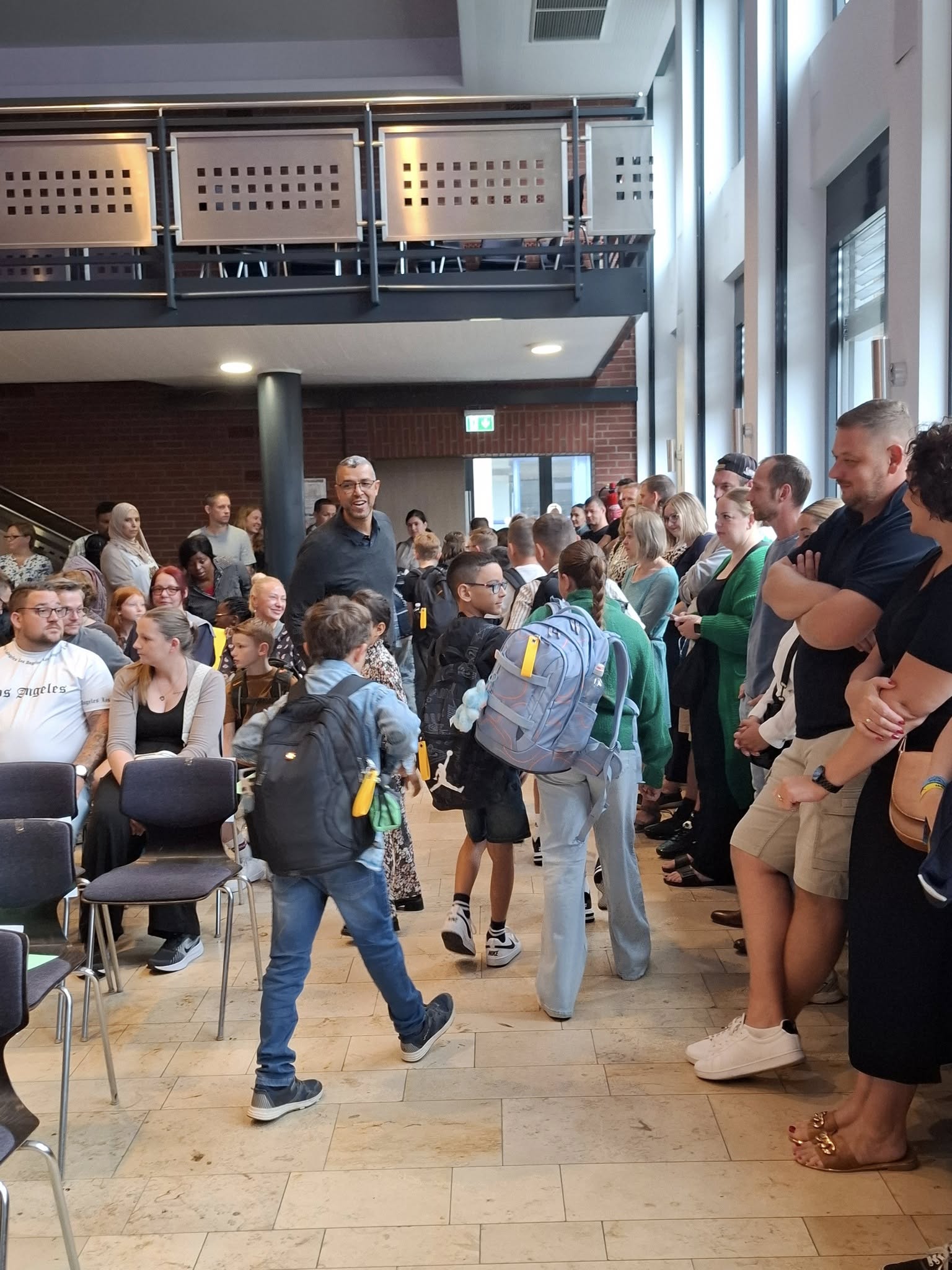 Anschließend lernten die Kinder ihre Klassenlehrer*innen – Herrn Pennartz (5a), Herrn Pavlidis (5b), Frau Daniel (5c) und Frau Bierfeld (5d) – und ihre neuen Mitschüler*innen kennen. Mit Spielen, ersten Informationen und Unterstützung durch engagierte Patinnen und Paten starteten sie in ihren neuen Schulalltag.